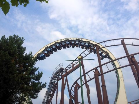 Weil ich hier nicht despektierlich sein möchte, würde ich ihn als einen Park mit der Zielgruppe "Familien mit kleineren Kindern" beschreiben. Wir hatten aber natürlich trotzdem unseren Spass, was vor allem an vielen Wasserbahnen, der relativ neuen Bahn "Fluch von Novgorod" und dem kleinen Hochseilgarten lag. Zudem waren die Verpflegungspreise deutlich moderater als in Skandinavien. An der Achterbahn "Nessie" mussten wir mal wieder warten - darauf, dass alle Wagen voll wurden. War uns bis dahin auch nicht passiert.