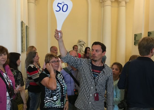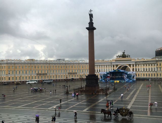 Mit Reiseführerin Svetlana Alexandrowna und Buskutscher Anatoli ging es mit mehreren Fotostopps quer durch die Stadt zum Winterpalais. Dort wurde (gemeinsam mit gefühlten drei Millionen Asiaten) anderthalb Stunden lang die Eremitage bewundert. Wieder kreuz und quer und zur Peter- und Paul-Festung mit gleichnamiger Kathedrale, in der die russischen Zaren beerdigt sind. Das typisch russische Essen (Wodka vorher !!!) nahmen wir in einem Restaurant ein, unser Bus hielt in zweiter Spur links und alle durften auf der Straße aussteigen (vermutlich auch typisch russisch). Das Essen war ziemlich gut und wir erweiterten unseren Horizont durch Konversation mit Mitreisenden.
