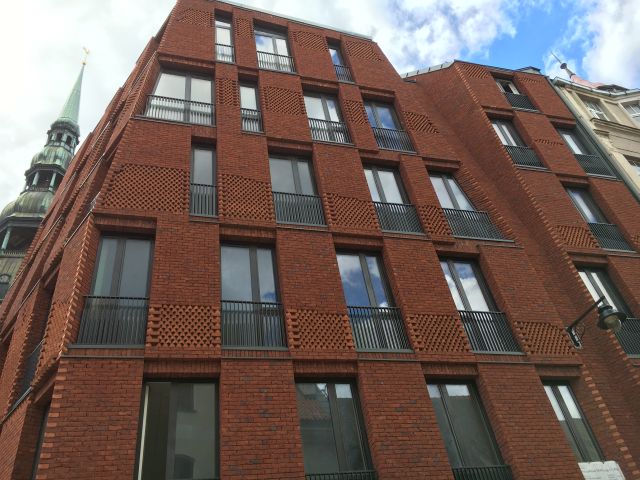 Nach dem Frühstück ging es auch gleich auf eine geführte Tour, Rigas Architektur und Geschmack. Und mit Geschmack ging es auch gleich los: am anderen Ufer der Daugava wurde uns auf der Dachterrasse eines Hotels Rigaer Schwarzer Balsam in verschiedenen Mixformen gereicht. Sieht aus wie Motoröl und schmeckt vermutlich auch fast genauso…