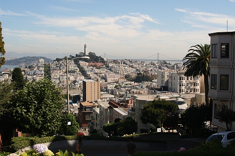 Nach einer durchwachsenen Nacht, die für die diversen Mitglieder der Reisegruppe so zwischen 3 und 6 (= 12 und 15 Uhr MESZ) zuende war wurde peinlich berührt festgestellt, dass sich in die Hotelbuchung wohl ne kleine Unachtsamkeit eingeschlichen hatte: das Hotel war ohne Frühstück. :-X Aber Not und Tugend sind auch in San Francisco zuhause und so gabs in einem Diner ein oppulentes Frühstück mit Eiern, Schinken, Bratkartoffeln, Pancakes, Toast, frischem Obst und Kaffee satt (und das waren nur die Sachen, die ich mir gemerkt habe...)
