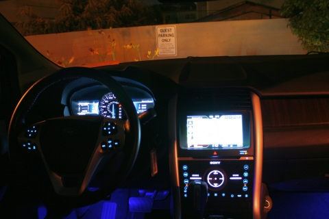 Der von uns gefahrene Mietwagen Ford Edge hatte unter anderem: 3,5L-V6 mit 265 PS, Allradantrieb, elektrische Sitze (die nach dem Schlüsselabziehen in Parkposition fahren...), Sirius-Sattelliten Radio mit Navigation, Rückfahrkamera, 265/60/18-Reifen (super Geräuschentwicklung, wenn man die im Stand dreht), 4 Getränkehalter, 3 Zigarettenanzünderanschlüsse, KEIN ESP, Lichtsensor (Regensensor komischerweise nicht), elektrisch umklappende Rücksitze (leider nicht stark genug, um ein auf der Rückbank sitzendes Kind einzuklemmen...) 22 Tasten am Lenkrad (von denen aber nur 4 blind getroffen werden können) usw. usf.
